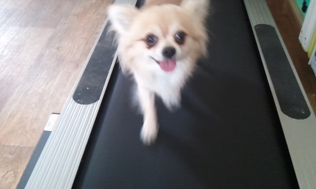 Kay stapt vrolijk door op de loopband (lees: voor extra training zeer zeker niet ter vervanging van wandelingen) van Maatje