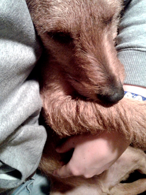Honden foto's > Kobus & Cas > Met het vrouwtje knuffelen