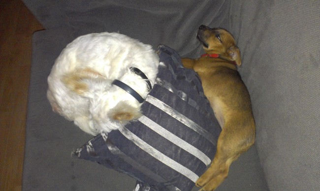 Honden foto's > marijke > lekker lang uit liggen op de bank met me vriendje mucky
