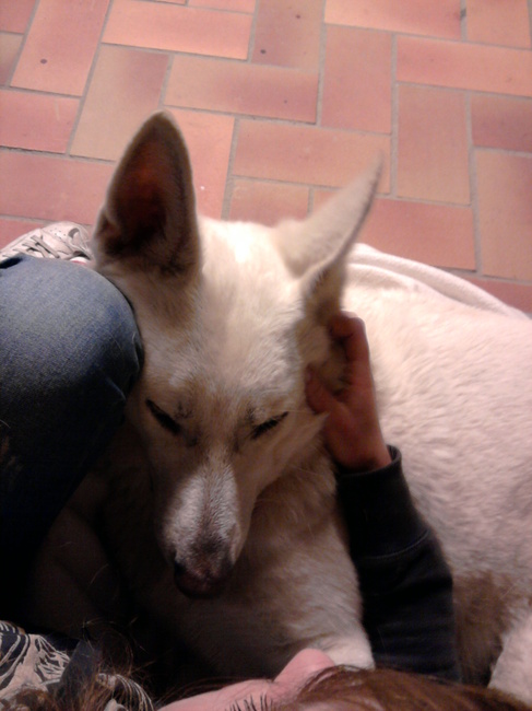 Honden foto's > Giulia > Droevige hond, na overlijden baasje