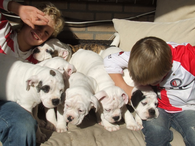 Honden foto's > betuwebulls > op deze foto ziet u onze kleinzoon met nog 6 pups deze zijn nog beschikbaar