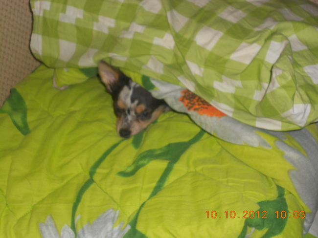 Honden foto's > Chantal,Bink,Fleur,Fee en Lieke > Bink wil smorgens niet uit bed