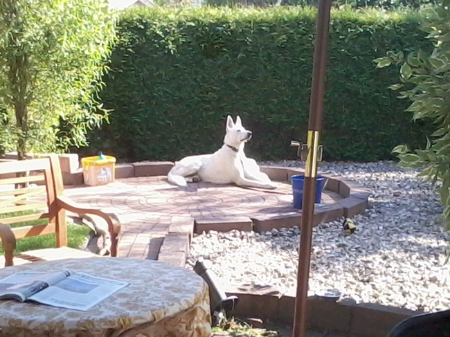 Honden foto's > Witte Draak > Mike ligt op te drogen in de septemberzon