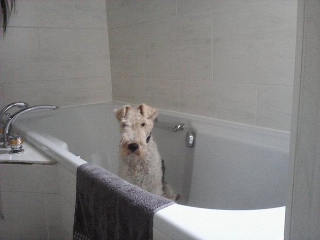 Honden foto's > mattice > Loekie gaat in bad