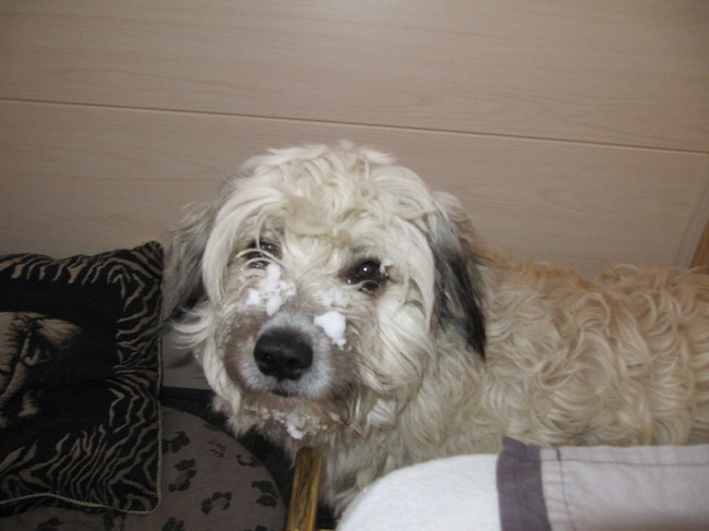 Honden foto's > chantal > kijk hoe leuk ik sneeuw vind ik neem het zelf mee in huis:P
