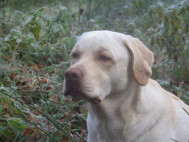 Honden foto's > esther > beetje koud aan de bips die bevroren blaadjes...