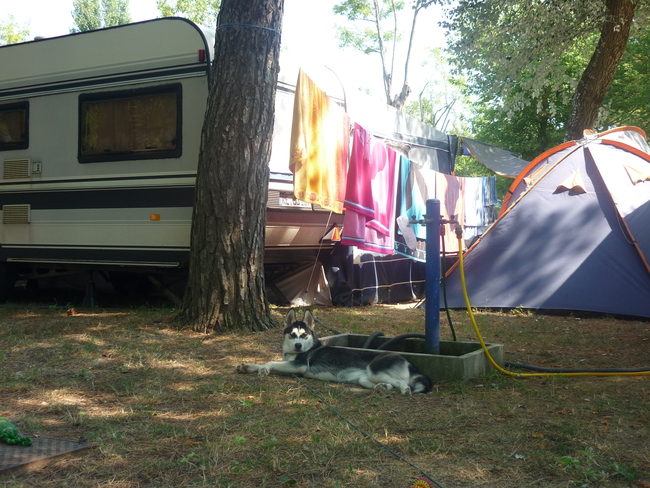 Honden foto's > Martine, Bailey en Jaika > Op vakantie bij de waterkraan lekker koel!