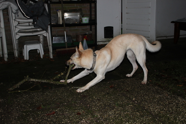 Honden foto's > Martine > Ik kan stokjes vangen!!