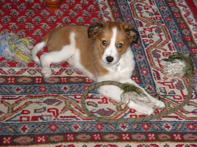 Honden foto's > Karin, Lucky*, Duke* en Buddy > Spelen met een touw
