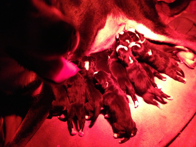 Honden foto's > Inge Schoovaerts > Net geboren en drinken bij mama