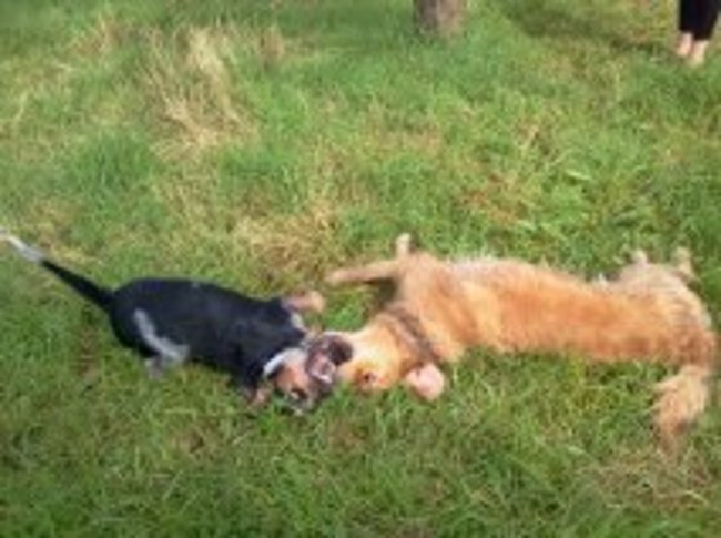 Honden foto's > tineke en milow > lekker stoeien met mijn vriendje flip