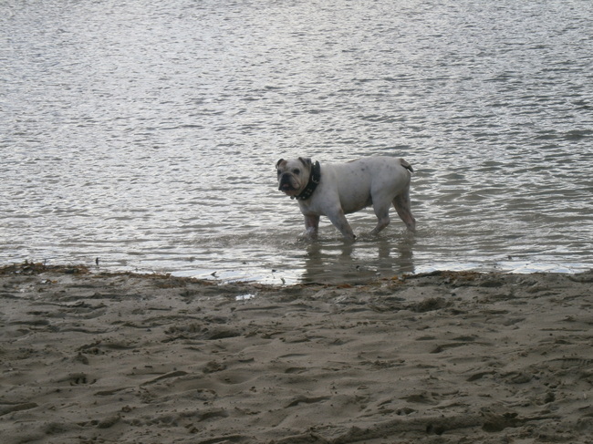 Honden foto's > Eric & Deborah + de hondenbende > Mike, ouwe bull bij het water