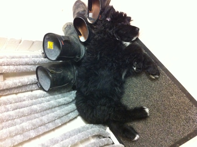 Honden foto's > Coen > Graag slaap ik op het koelste plekje bij de achterdeur..