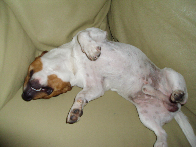 Honden foto's > amatthes > hier was spike helemaal uitgeput van de bossen.