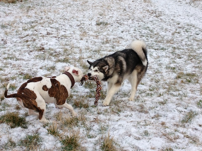 Honden foto's > Izidora Murre > touwtje trekken met een vriendinnetje