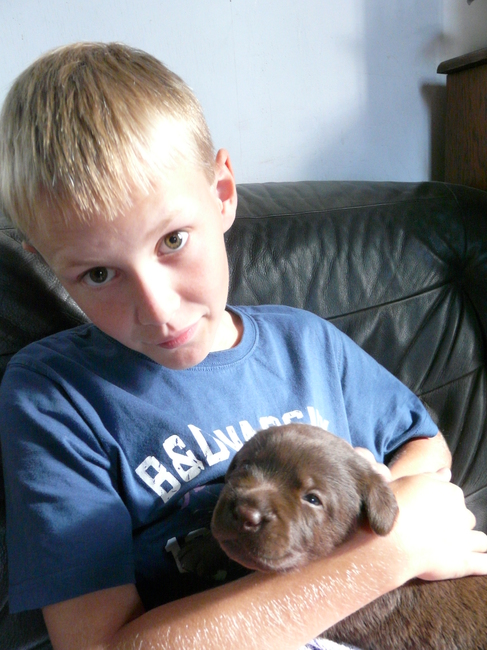 Honden foto's > Wendy > Kyra in de armen van Niels