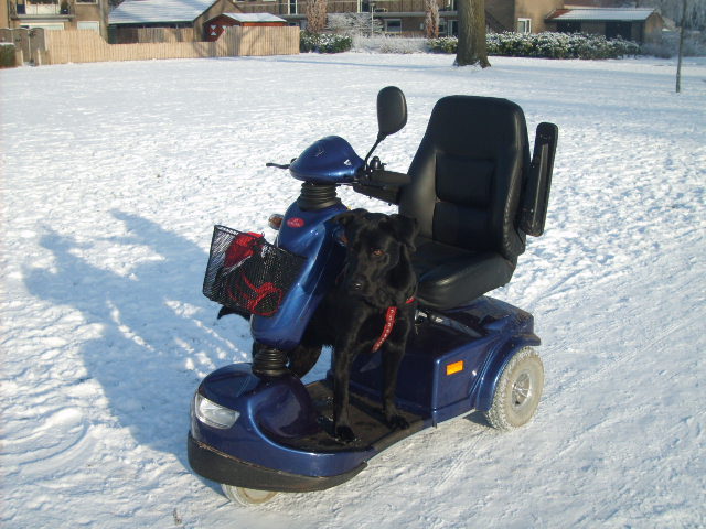 Honden foto's > Rianne > afgelopen winter Kyra bewaakt mijn scootmobiel als de beste lollll