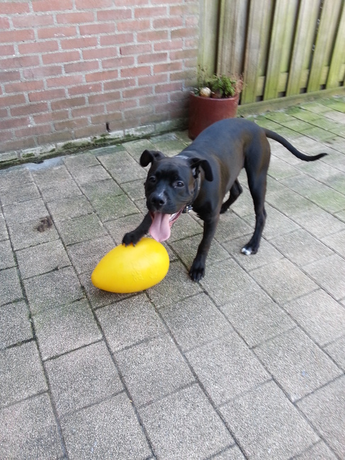 Honden foto's > Bert, Brigitte & Danger > Danger met zijn nieuwe Jolly Egg