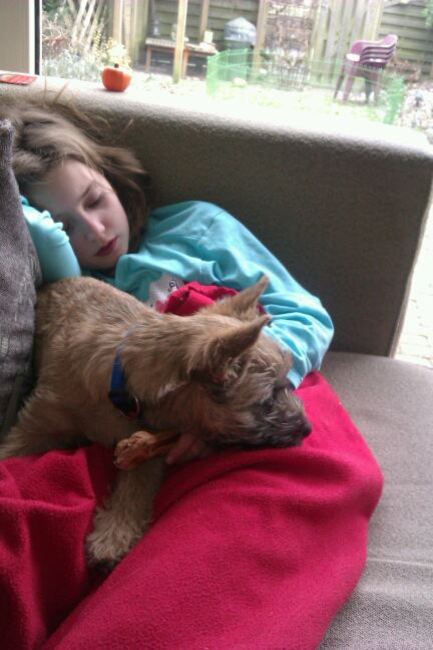 Honden foto's > Zita (Sep) > Samen met mijn zieke dochter op de bank rusten.