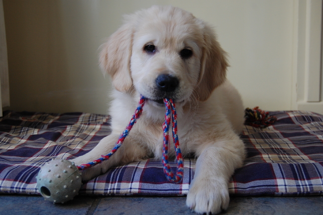Honden foto's > Pascalle > Max vond rubberbal met touw heel leuk, maar die is allang kapot.