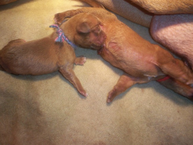 Honden foto's > TanjaWDD > Hihi de kleinste aan de navelstreng van de grote pup :-)