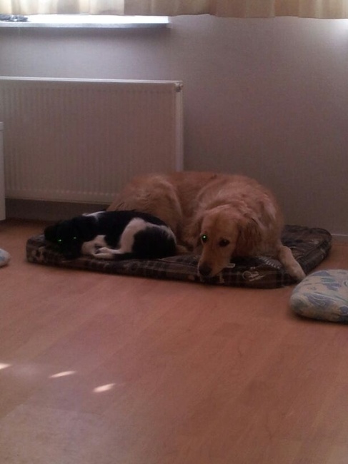 Samen op het hondenkussen, zo lief met z'n tweetjes. van Jootje_Bo_Bente