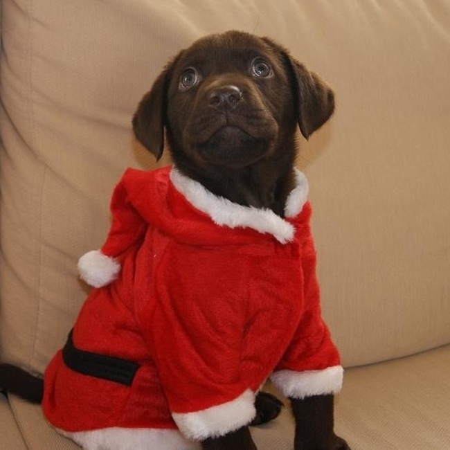 Honden foto's > Chantal en Cayo > Pup Cayo als kerstman!