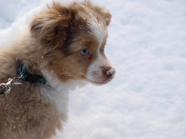 Honden foto's > Lauren, Jimi & Luca > Jimi als puppy in de sneeuw :)