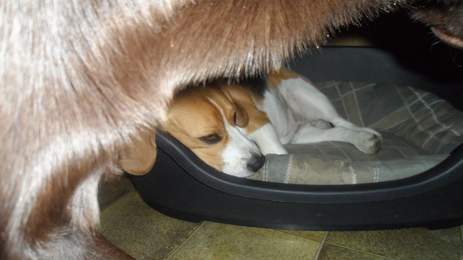 Honden foto's > imke steevens > Slapen in rai zijn mand