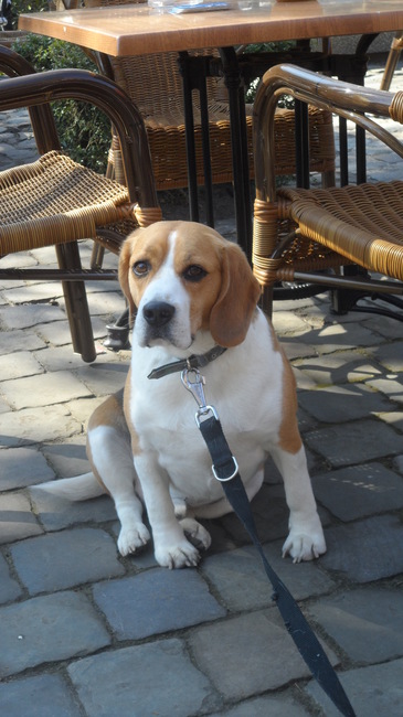 Honden foto's > imke steevens > Darco mee naar Postel, lekker op het terras en naar Mol markt