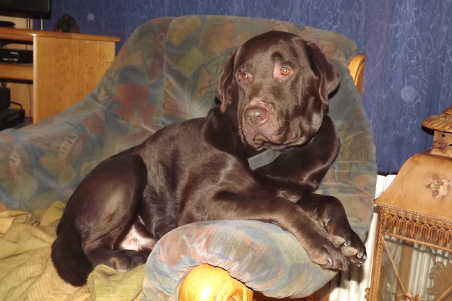 brenco ligt hier heerlijk in de stoel van Winny & Tinus