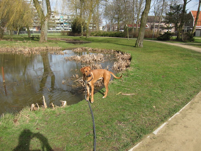 Honden foto's > Anne-Wil (baasje van Juno) > ff drinken uit de vijver... lekker koel