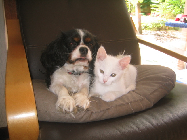 Honden foto's > Miek Willemsen > Dikke vrienden met onze nieuwe kitten Simba