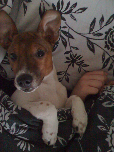 Honden foto's > Femke & Gizmo ! > Uhmm Gizmo denkt dat ie een mens is haha