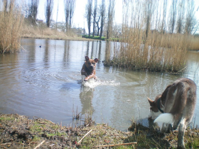 Honden foto's > Quincy, Bailey & Nova > net bovern zijn hoofd bal was in bereik maar nova werd afgeleid