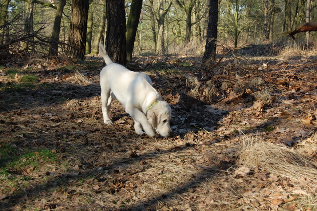 Honden foto's > Pascalle > voor eerste keer in het Bos.