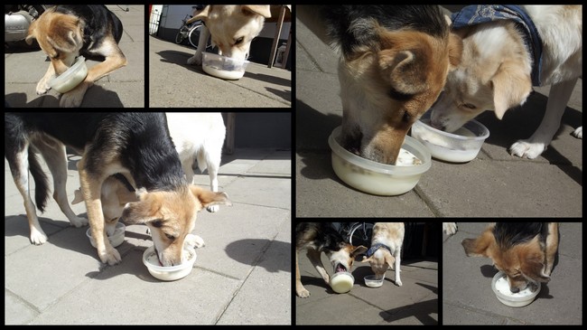Honden foto's > Tamara - Abby, Anna, Jamie, Aylin & Suki > Eerste keer ijsje eten!