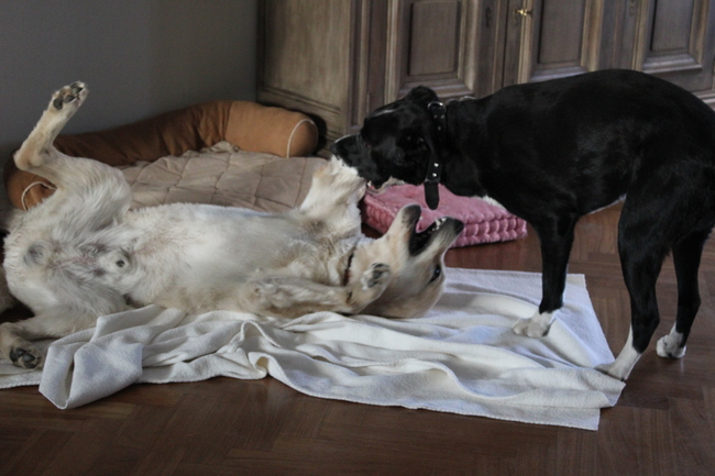 Honden foto's > Suzan > Een serieuze machtsstrijd (ahum)