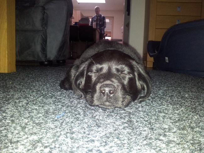 Ligt heerlijk zo in het gangpad, heb geen bench of mand nodig. van Raymond Megens