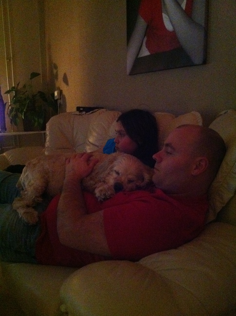 Honden foto's > Culpa > Gezellig met z'n drietjes op de bank. Lekker slapen warm en veilig bij de baas.