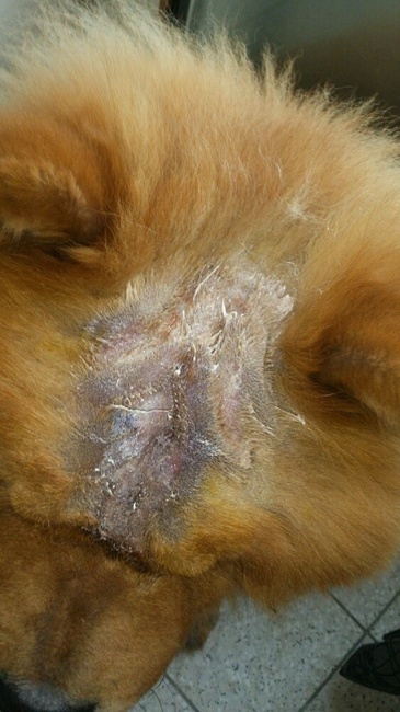 Honden foto's > Caroline & Zoeri > Zoeri terug van de dierenarts , geschoren diagnose was ( hotspot )