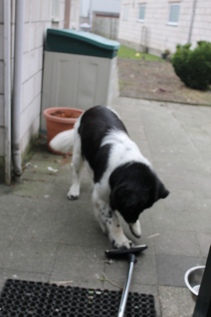 Honden foto's > snoopy, rikkie , lady en xana > stofzuiger is toch zo leuk