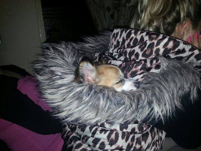 Honden foto's > Mandy (L) baasje van Gucci&Amy > Amy lekker aan het slapen bij vrouwtje