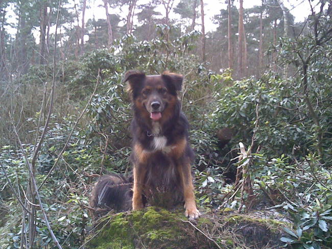 Honden foto's > Denice > in het bosging ik weer klimmen en eindigde op de stronk van een omgevallen boom