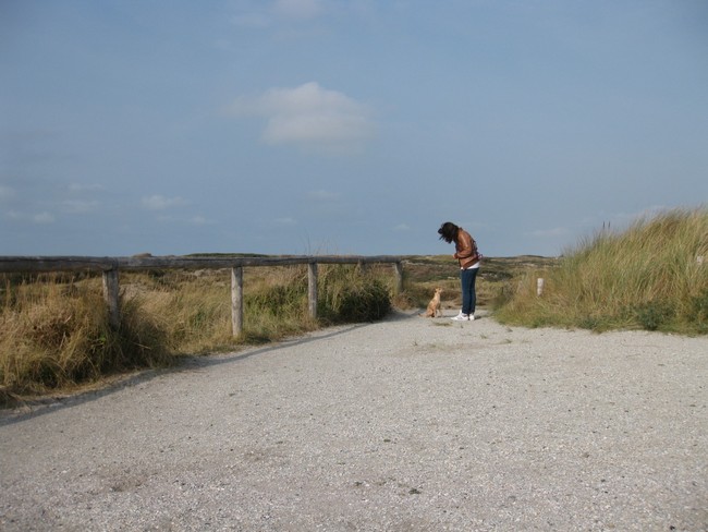 Honden foto's > Lois en Kyra > Ik bleef netjes zitten toen baasje weg liep, dus koekje verdiend!