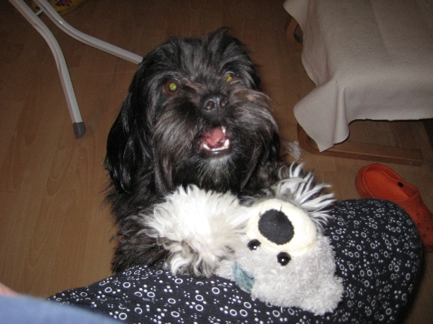 Honden foto's > Olga met Nera en Sammie > ...of met de beer spelen?