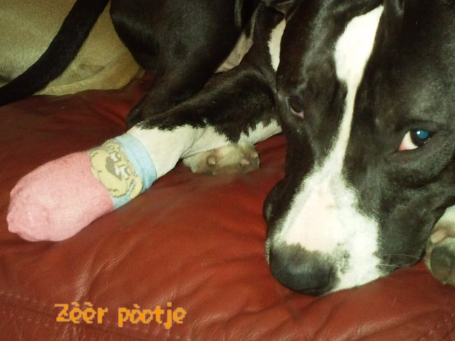 Honden foto's > HILL > zere pootje .,nagel gescheurdmmvrouwtje verbonden met sokje erom(moest ie nu roze) zucht .......