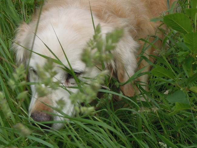Honden foto's > Dani > verstopt in het gras