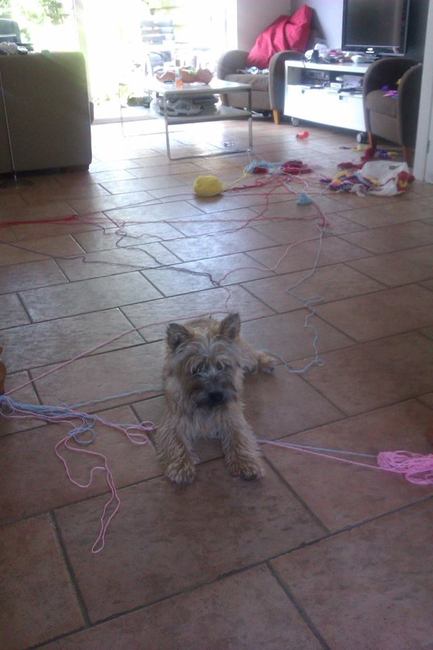De tas met de haakspullen voor de deken van mijn dochter is door Sep ERG grondig geinspecteerd!! van Zita (Sep)