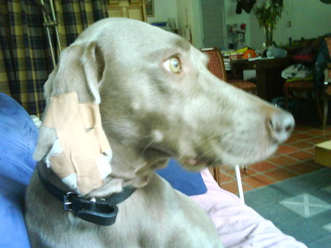 Zo zie je eruit als je door een struik rent en je oor langs een doorn komt waardoor je een speldnaald groot gaatje in je oor krijgt wat bloed voor een gat van een meter ;-) (Er zat maar 1 hechting in.) van pink_sartje